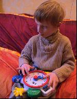 Au bout de cinq ans, je ne vous dis pas tout ce que mes parents ont accumulé pour susciter mon éveil. Du piano miniature à l’accordéon en passant par l’harmonica, le Kalimba, le Djembe (etc.) ; des jeux d’emboîtement aux puzzles sommaires, de la poupée qui rit aux animaux de la ferme qui font leur cri respectif, de la balle sonore (quand elle roule) au bâton de pluie. Conclusion : ça s’entasse à côté du canapé ! Il y a là-dedans toute une série de jeu que je n’ai jamais voulu explorer, marquant un refus catégorique. Quant aux autres, il faut me motiver et m’en rappeler l’existence pour que je m’y intéresse …quelques minutes. Finalement, le seul jeu auquel j’accepte de jouer de bonne grâce, c’est avec la balle sonore.